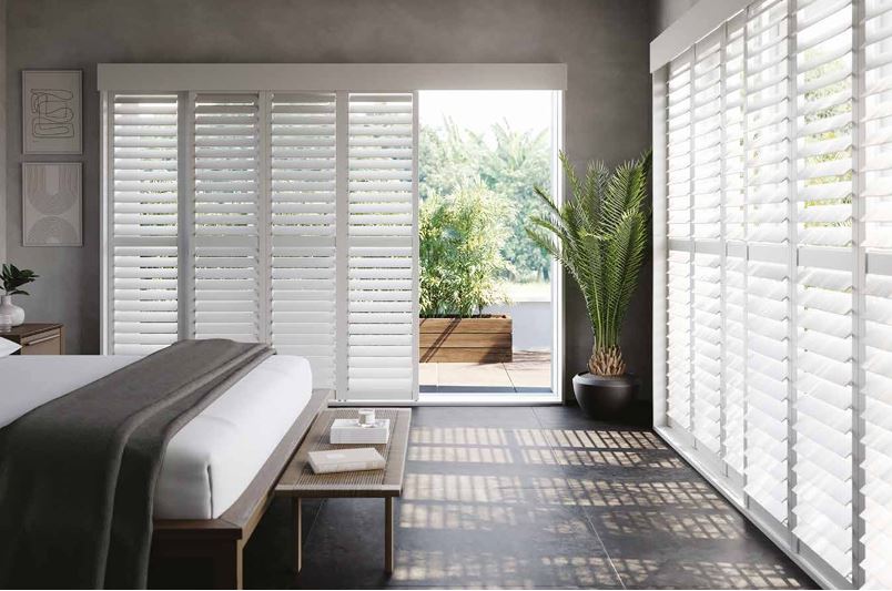 Shutter panels glide effortlessly across a discreet